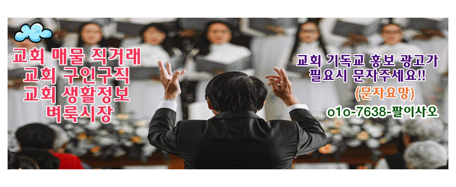 교회 매매 임대 구인구직은 목회자분들과 교인들을 위해 운영자의 사비로 운영되는 무료공간입니다.